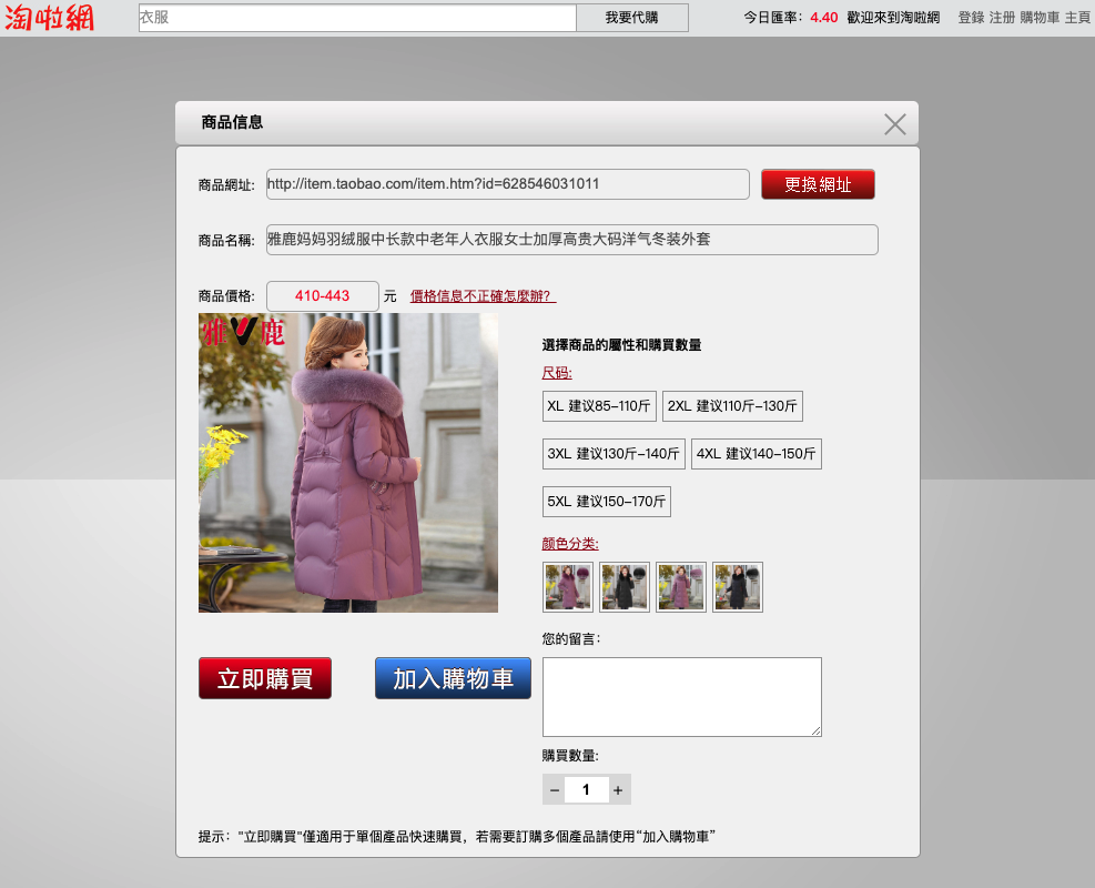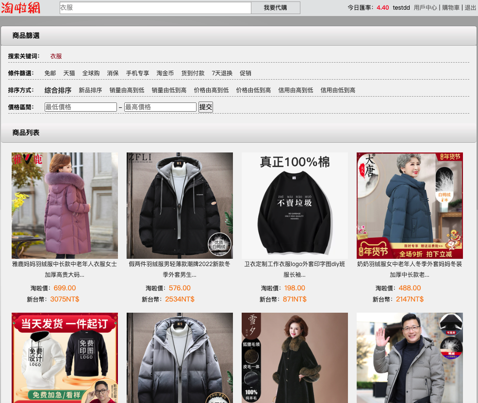 新增淘寶網全網關鍵詞搜索功能,只需要在代購輸入框中輸入您想要購買的產品關鍵詞,即可搜索到淘寶網全網產品包括天貓產品均可搜尋到。